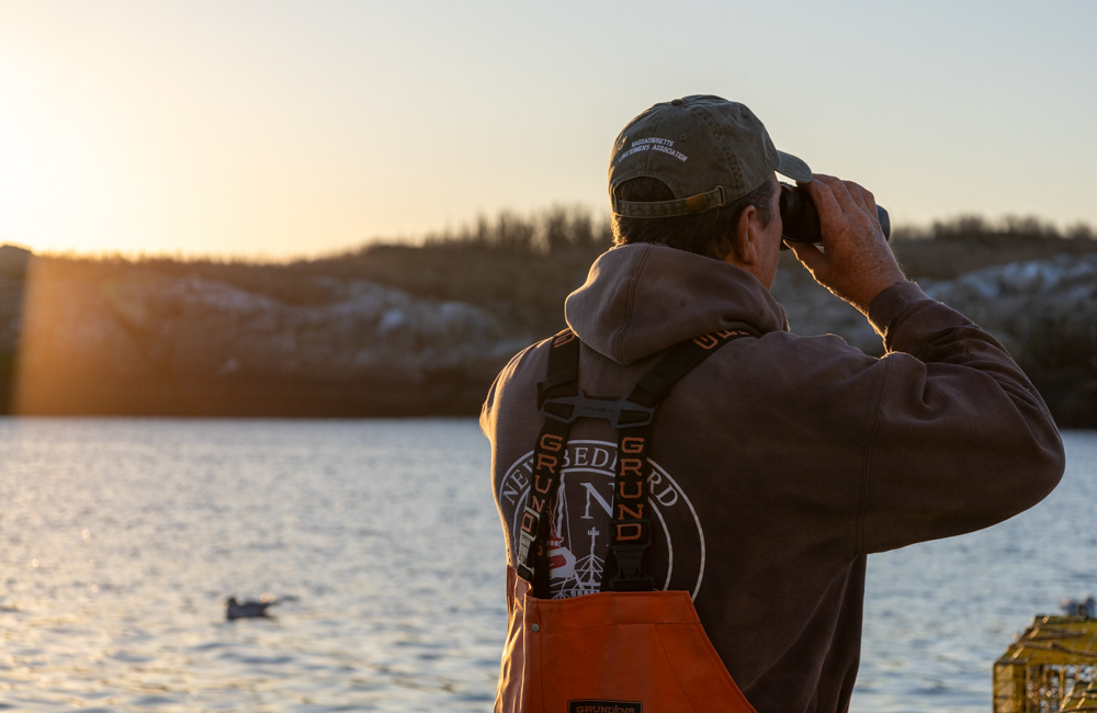 “Ahhhh, it’s gonna be a beautiful sunrise,” he says, with his stereotypical Massachusetts accent, looking ahead into the darkness of water that lies ahead.